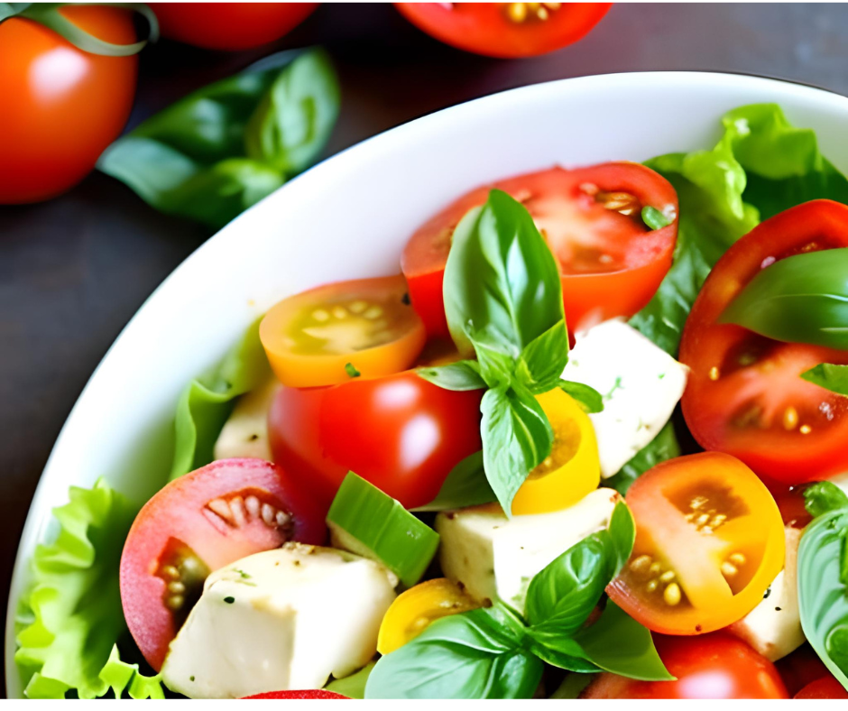 This fat-free tomato salad is a burst of freshness and goodness on your plate. With its colorful assortment of vegetables, aromatic herbs, and creamy mozzarella, each mouthful is a celebration of vibrant flavors. Simple to make and versatile in dressing options, this salad is bound to be a favorite at any gathering or family meal. Enjoy the natural goodness of fresh ingredients with this zesty and irresistible tomato salad!